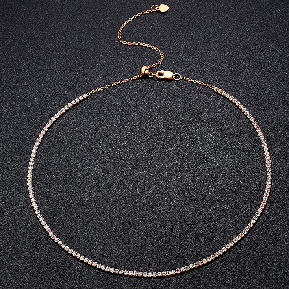 2mm Moissanite Tennis Necklace for Women S925 Silver Plated 18K Gold Sparking Rhinestone Choker Chain Wedding Jewelry Adjustable